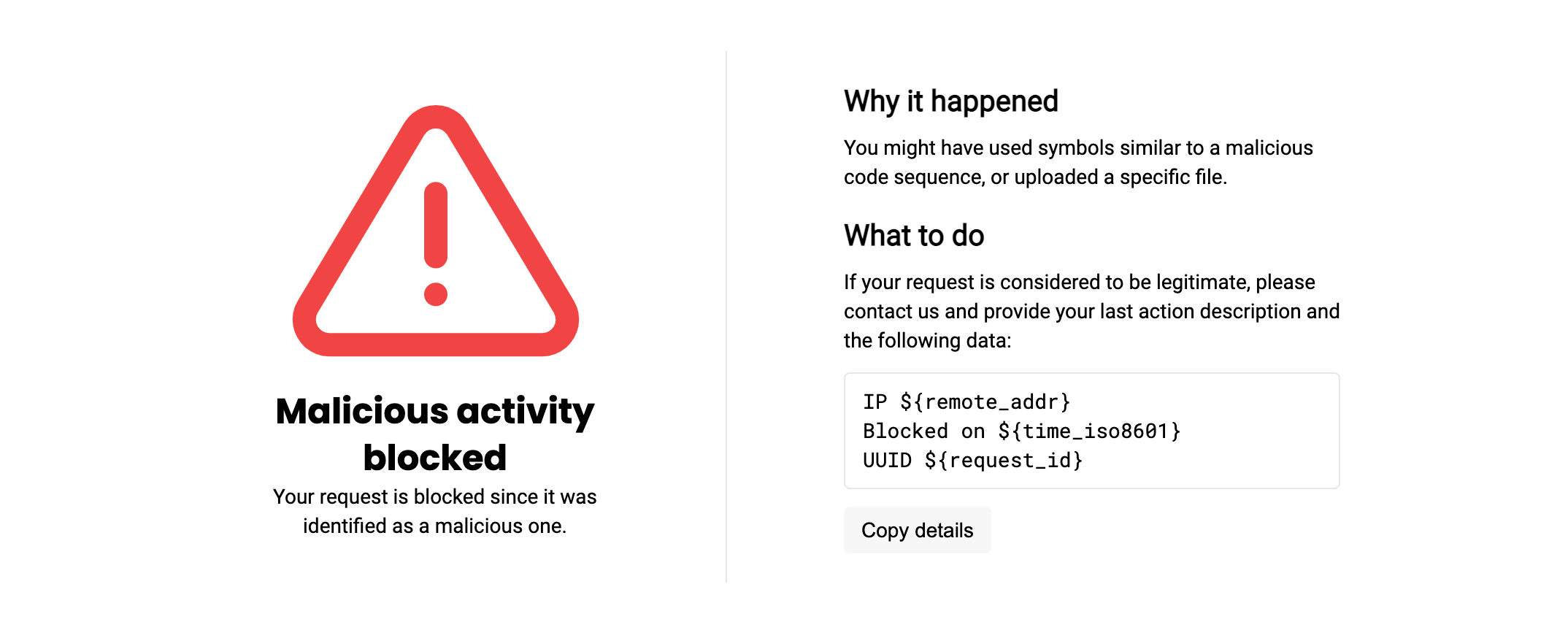 To control the feature, go to Wallarm Console → Security EdgeInlineConfigureReturn styled page for blocked requests.