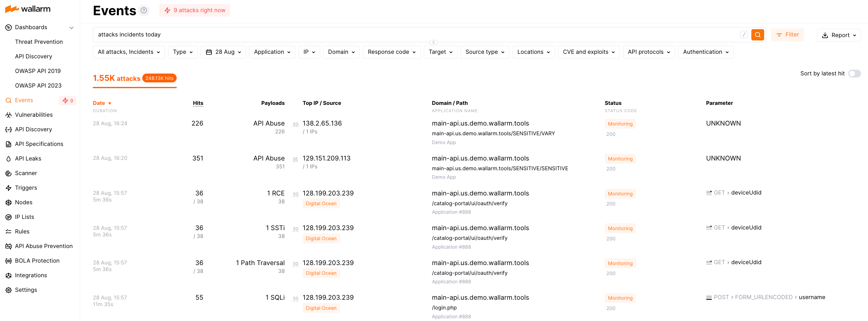 Wallarm gives you the tools to effectively respond to security threats, offering in-depth data, broad integrations, and blocking mechanisms. It first presents detailed information, helping security analysts gauge the threat's nature and severity. You can then tailor responses, act on threats, and send alerts to relevant systems. Here is how Wallarm backs you up: